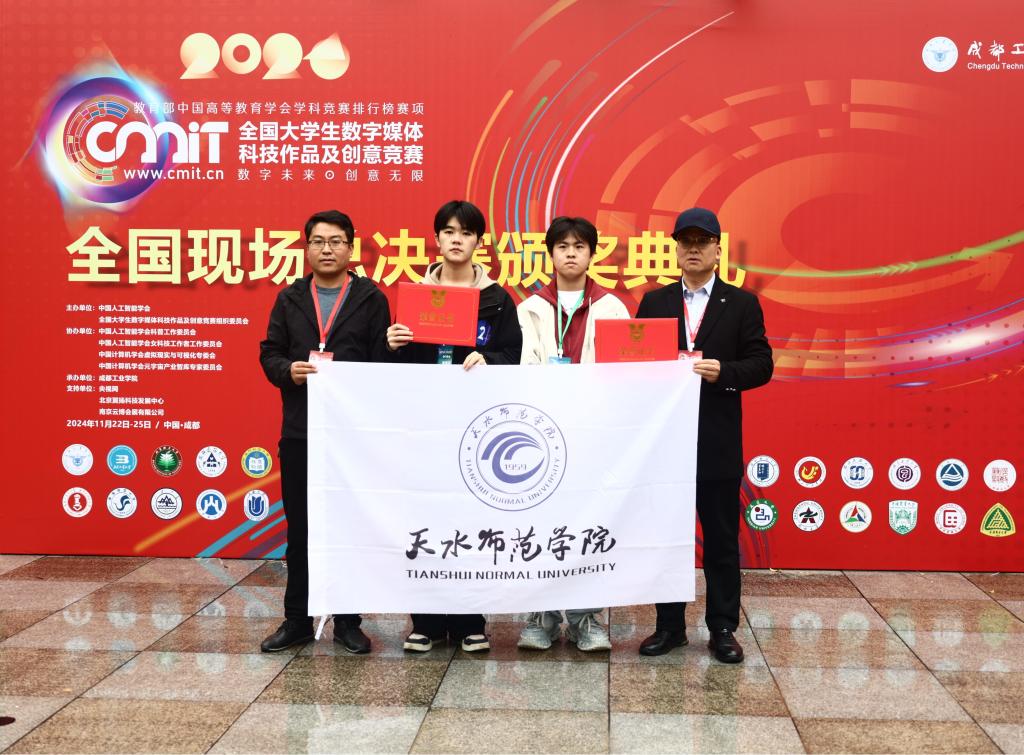 11月22日至25日,2024年第十二届全国老员工数字媒体科技作品及创意竞赛全国总决赛在四川成都举行,由beat365在线官网入口教师余岩松、孙菻指导的2022级网络与新媒体专业员工王宏洋、马绪全等同学创作的创意短视频《丝路・敦煌・麦积山》,经过评审专家现场提问及团队答辩等激烈的比赛环节,获得“民族文化创新表达”类全国总决赛二等奖,2021级戏剧影视文学专业蒋晨阳、张海等同学创作的创意短视频《文物印象——丝路上的天水》获得全国总决赛三等奖。全国老员工数字媒体科技作品及创意竞赛是教育部《全国普通高校老员工竞赛分析报告》中的重要赛事,也是教育部高等教育学会教学会榜单赛项,此次获奖,是beat365在线官网入口网络与新媒体、戏剧影视文学、数字媒体艺术等专业的员工在全国专业类学科竞赛中实现的重要突破。