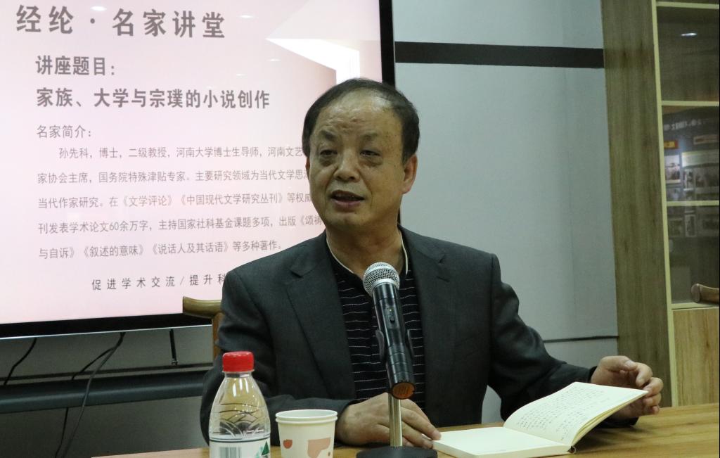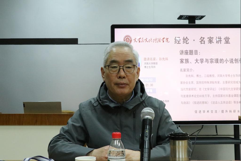 10月12日,河南大学教授、博士生导师孙先科教授在天水师范大学雷达文学馆,作了题为《家族、大学与宗璞的小说创作》的学术讲座。本次讲座由beat365在线官网入口王元忠教授主持,孔会侠教授、王惠民老师,以及beat365在线官网入口24级、25级现当代文学、文艺学全体研究生参加。
