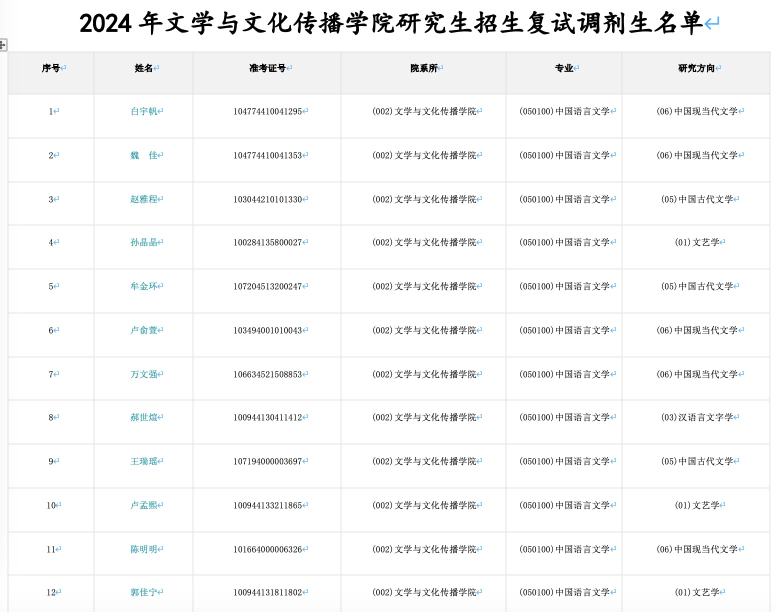 2024年公司研究生招生复试调剂生名单