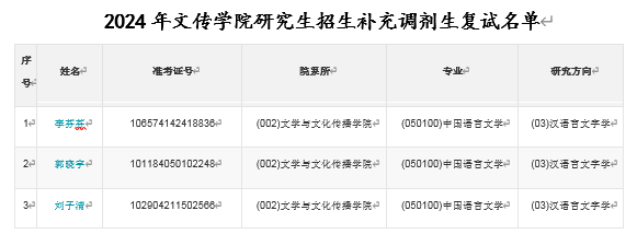 因有放弃调剂的考生,现将递补3名考生名单公布如下: