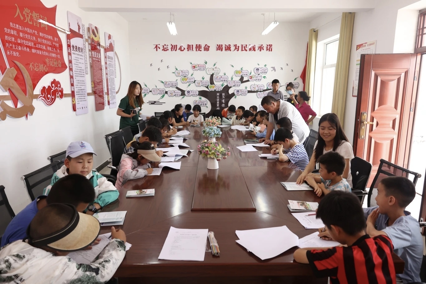 7月18日,团队成员聚焦“如何讲好普通话”开展专题宣讲会。会上,团队成员结合日常交流场景,用通俗易懂的语言讲解普通话发音技巧、常见误区及推广意义,强调普通话在沟通交流、求职就业、融入社会等方面的重要作用。针对不同年龄群体的需求,他们还特别分享了适合老年人的日常用语练习方法、适合青少年的朗诵技巧,让在场村民和员工都能学有所获。