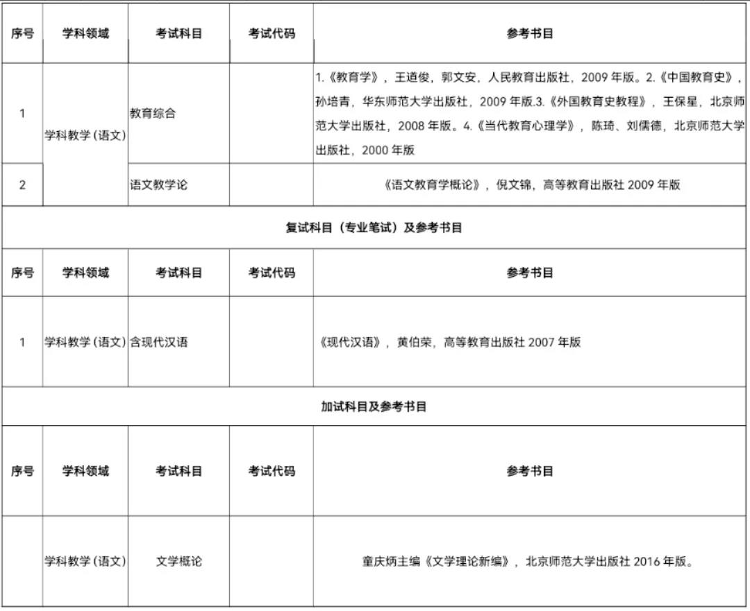 2022年学科教学(语文)教育硕士招生考试科目、参考书目