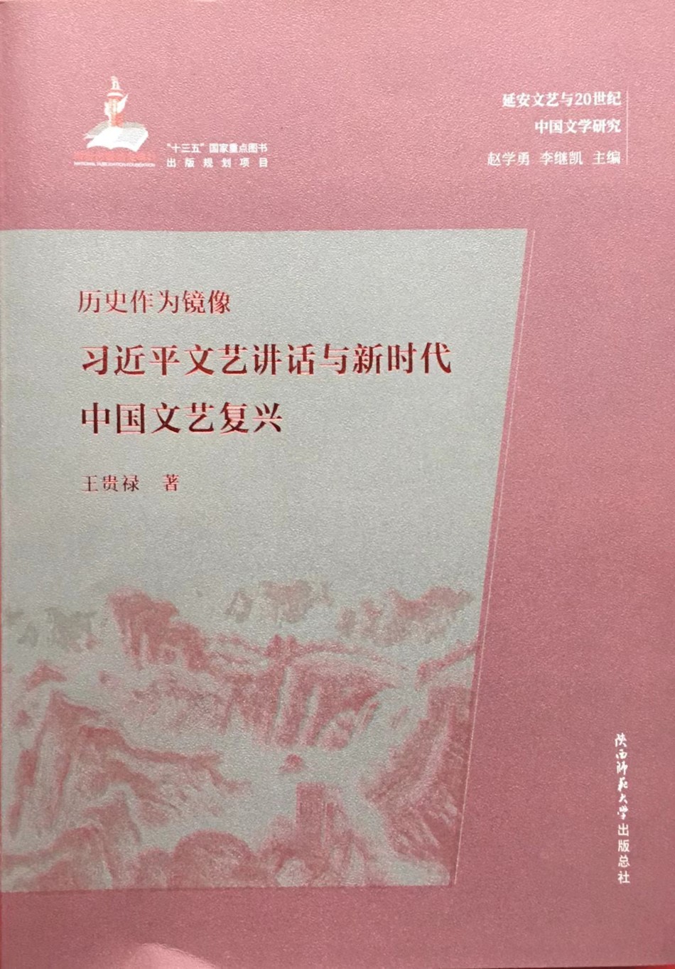 王贵禄教授的文艺论著《历史作为镜像:习近平文艺讲话与新时代中国文艺复兴》(陕西师范大学出版社2021年1月版),是国家社科基金重大招标项目“延安文艺与20世纪中国文学研究”(11&ZD113)之滚动项目的最终研究成果,是同名书系“延安文艺与20世纪中国文学研究”的论著之一。