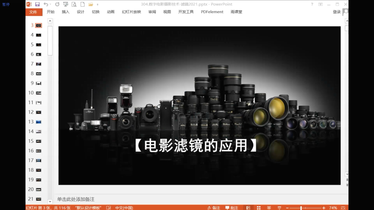 课堂中,先就电影滤镜分类进行了说明,详细讲述了柔化系列效果滤镜、光学系列滤镜、颜色系列滤镜、灰度、偏振镜系列滤镜、降对比系列滤镜等几种电影摄影中常用的滤镜的作用与区别;接着针对ND、GND、IR-ND、PL镜的具体功能、特性及应用技巧进行讲解;然后重点讲述了滤镜系统在电影摄影中的应用,利用摄像头,给员工进行了遮光斗的实物展示。并将2021年秋季最新发布的“铁头-幻镜K1”系列遮光斗滤镜系统进行了介绍和视频展示,把最新的前沿动态带给员工。最后进行了归纳总结。在授课的同时,注重贯穿对课程思政目标的落实,因势利导,引导员工在蜗居宿舍防疫的过程中,安抚员工,鼓励员工在逆境中学会自洽、自处,共克时艰。